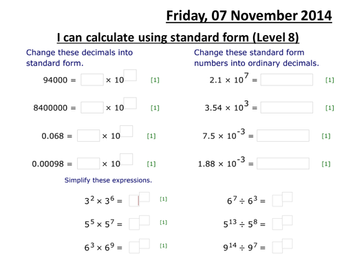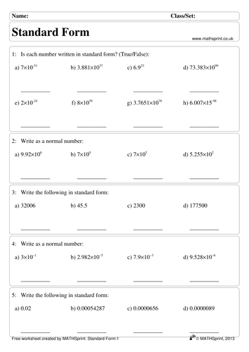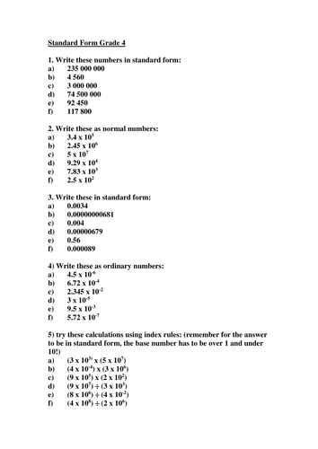10 questions Multiple Choice on Writing Numbers in Standard Form. 21 106 3 10-4 f. Worksheets with Answers Whether you want a homework some cover work or a lovely bit of extra practise this is the place for you.