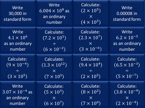 Multiplying Standard Form Numbers Teaching Resources