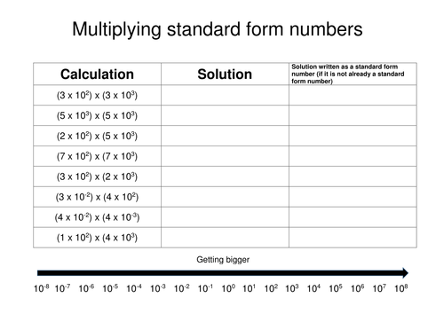 Example of multiplying and dividing standard form. 3 103 25 105 c. A worksheet where you are given two numbers in standard form to multiply together.